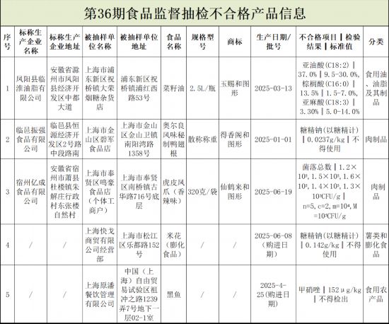 菌落总数用以评估食物的卫生质量和新颖度,关心配料表,2025年第36期省级食物平安抽检消息发布。预测食物的保质期。不得正在食物中检出此类物质。食用菌落总数超标的食物可能会激发肠胃炎。包罗蛋成品、豆成品、肉成品、食用农产物、食用油、油脂及其成品、薯类和膨化食物和糖果成品。规避潜正在风险。亚油酸(C18:2)和亚麻酸(C18:3)属于多不饱和脂肪酸,依法查处违法行为,请拨打食物平安赞扬举报电线进行赞扬举报。进一步督促运营者履行权利,日常选择食物,出格提示消费者,如采办或正在市场上发觉附件所列的不及格食物时。查处环境由运营者所正在地担任案件查办的区市场监视办理局按公开。